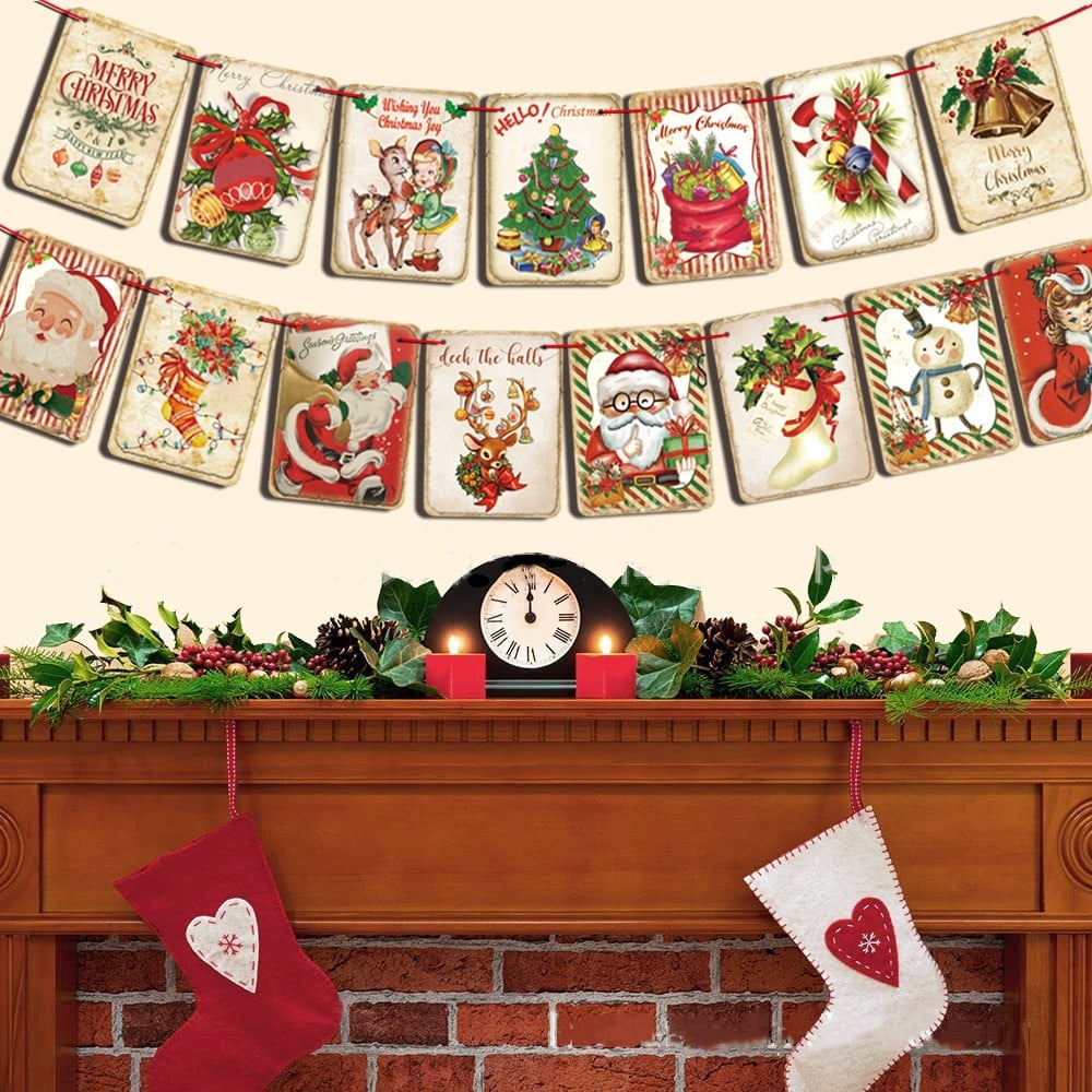 DJIWJDCDA 🎅Vintage Style Christmas Banner