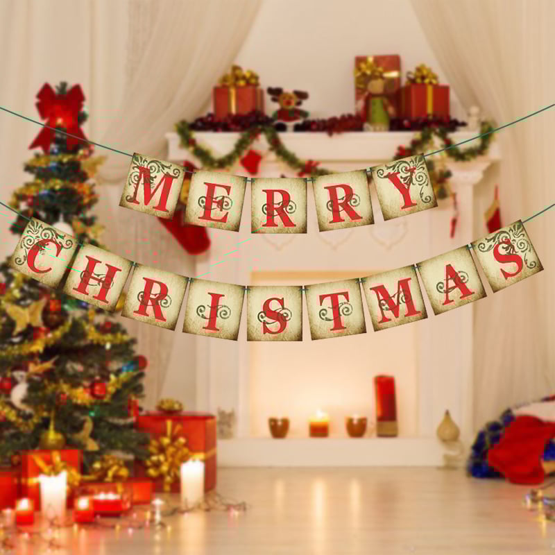 The vintage Merry Christmas banner is equipped with 15 vivid Christmas element flags. Combine banners with other Christmas decorations for a delightful and memorable Christmas party.