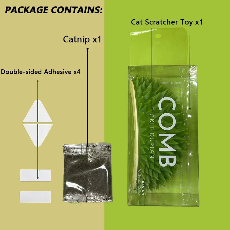 - Package contains: Cat Scratcher Toy x1 + Double-sided Adhesive x4 + Catnip x1