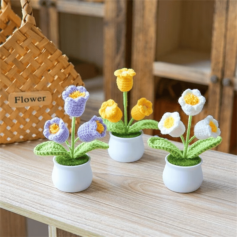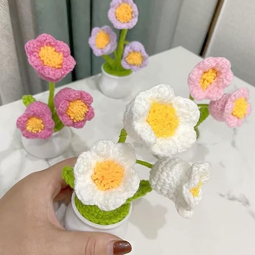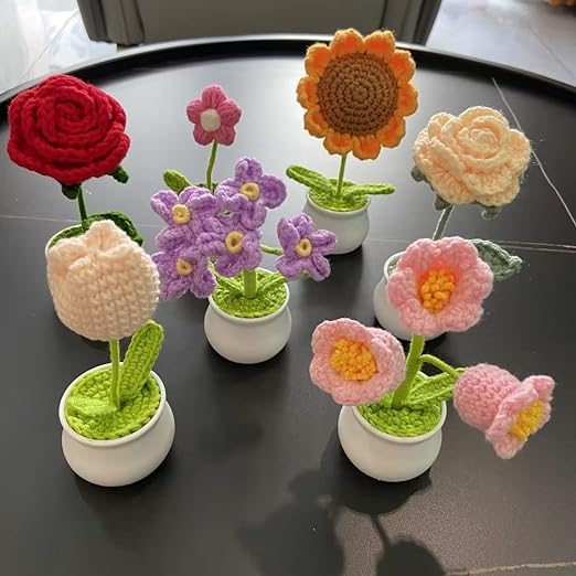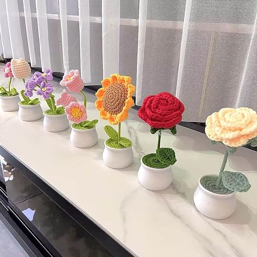 DJIWJDCDA 🌺🏡✨ Hand Woven Flowers - Tulips, Daisies, Roses Pot Decor ✨🌿🧶