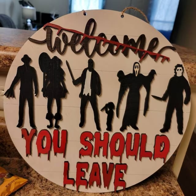 🎃【Material】Made of natural wood. no smell. no cracking. sturdy and durable for long-term storage. Made from high-quality materials. this sign is both durable and stylish. making it the perfect addition to any home's outdoor décor. Plus. it makes for a great gift for the horror fan in your life.