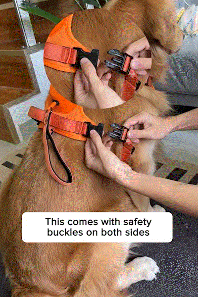 Innovative Design: Dog harness and retractable leash all-in-one.Built-in safety system in this harness will automodcally stop your dog from escaping into the crowd forcefully and suddenly when you walk your dog.The leash will automatically retract into the module when your loosen it gently.Free your hands and let your dog enjoy the freedom.