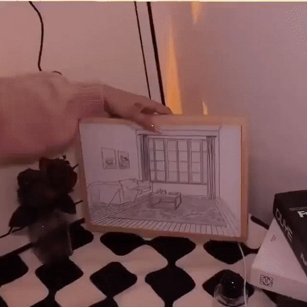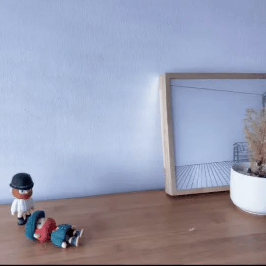 Hwang expressed the outline of things as a line and made a space with light. “If you have a line. the bird's eye view will be a plane. but when it lights up. it gives you spatiality. time and emotion.” The artist printed the image behind the sanded tempered glass. There are several layers of live -action images. LED lights. and light barriers.