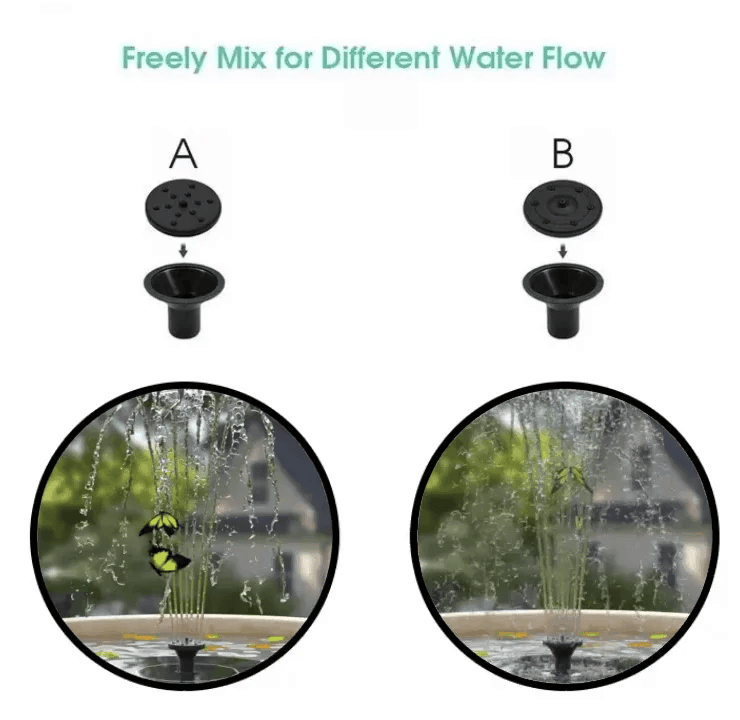 ✔【EXCLUSIVE FIXER】 The exclusive fixer designed by our company can avoid the solar fountain from moving randomly. It can prevent the fountain spraying the water outside of the bath and empty the water quickly. No need to waste time and water anymore.