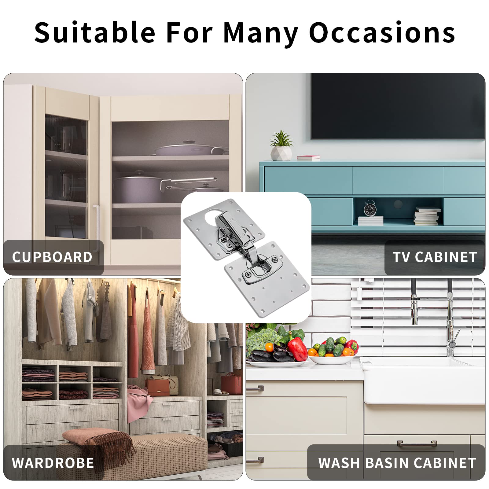 Versatile Usage: Our stainless steel hinge fixing plate bracket kit is not only suitable for kitchen cabinets but also perfect for various furniture applications. such as wardrobes. cupboards. drawers. and more. It provides reliable support and stability to ensure long-lasting use.