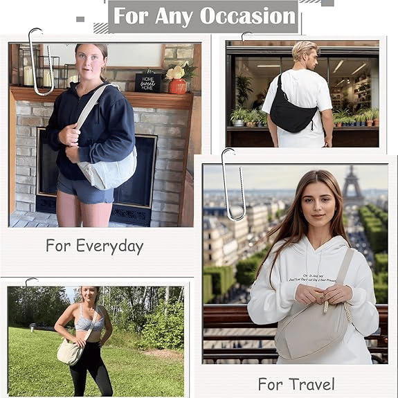 Perfectly Sized for Everyday Use: Our nylon crescent bag. measuring 13.4 inches wide and 8.66 inches high. perfectly balances spaciousness and sleek design for everyday use. With an adjustable shoulder strap that extends up to 23.6 inches. you can easily switch between classic shoulder carry and trendy crossbody style for ultimate versatility and comfort.